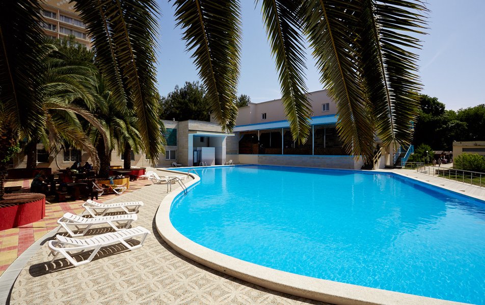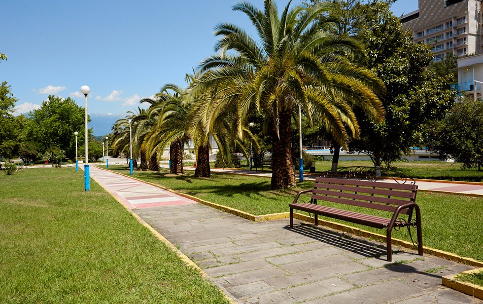 В парке помимо цветущих кустарников, пальм и цветов произрастают реликтовые деревья. Центральную часть занимает открытый плавательный бассейн, около которого оборудованы зоны отдыха, работает летний бар, теннисный корт и спортивные площадки. А К услугам отдыхающих кафе с большим ассортиментом блюд национальной кухни, киноконцертный зал, экскурсионное бюро, салон красоты и современный SPA-центр с ванным отделением, массажными кабинетами, финской сауной.